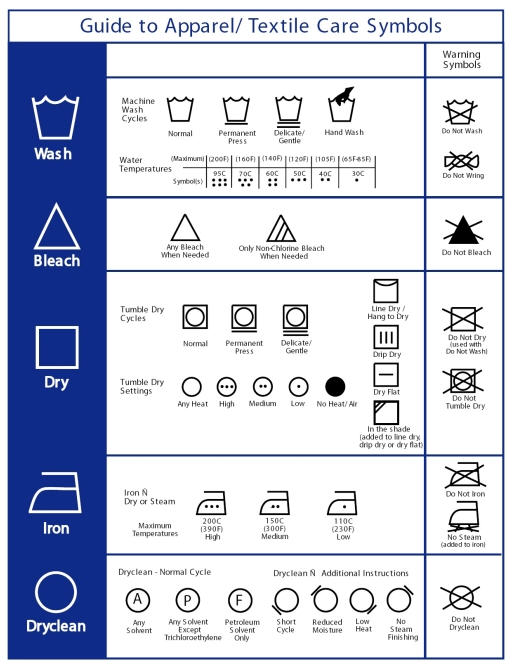 Care labels for textile wearing apparel must provide either washing or dry cleaning instructions. Only one safe method of care is required to be provided by the manufacturer. The label must also warn you against any procedure that might harm the item during reasonable care. For example, the label must say whether any step of the care method - washing, bleaching, drying, ironing or dry cleaning - could harm the garment or other garments cleaned with it.